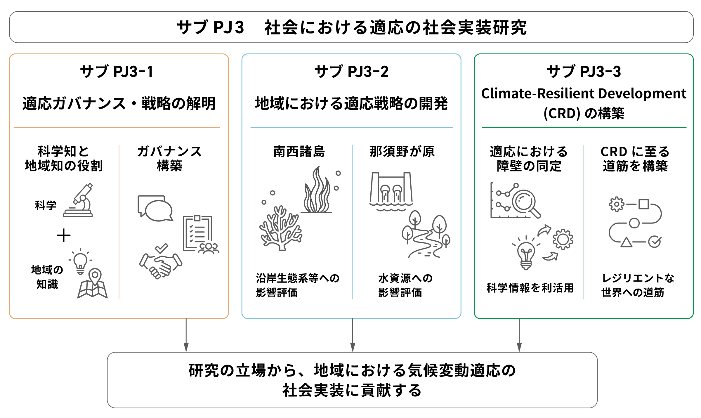 | サブPJ3-1 | 地域の適応能力向上に向けた要因分析と実践的適応戦略の立案 |